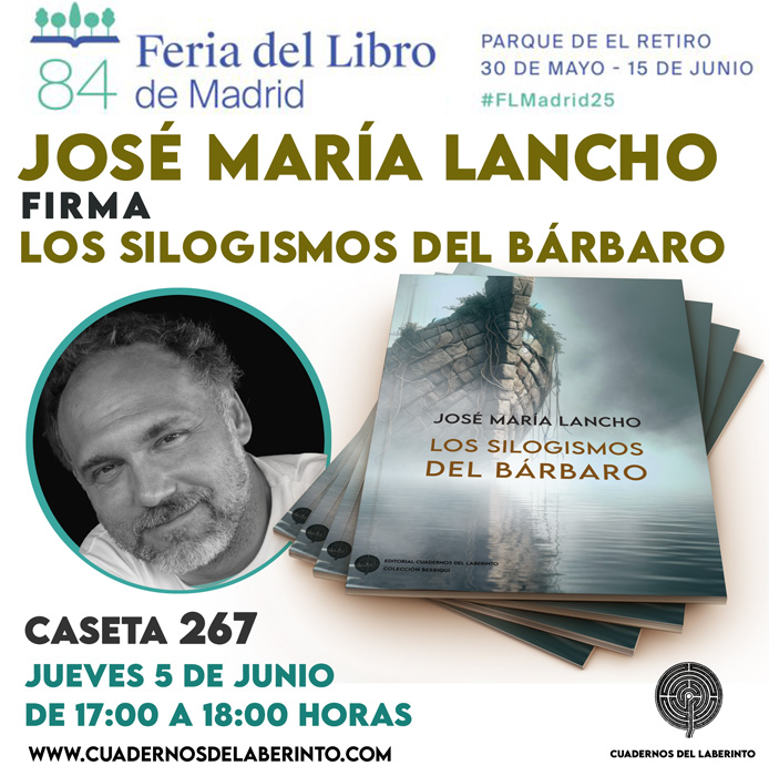 De 17:00 a 18:00: José María Lancho firmará "Los silogismos del bárbaro"